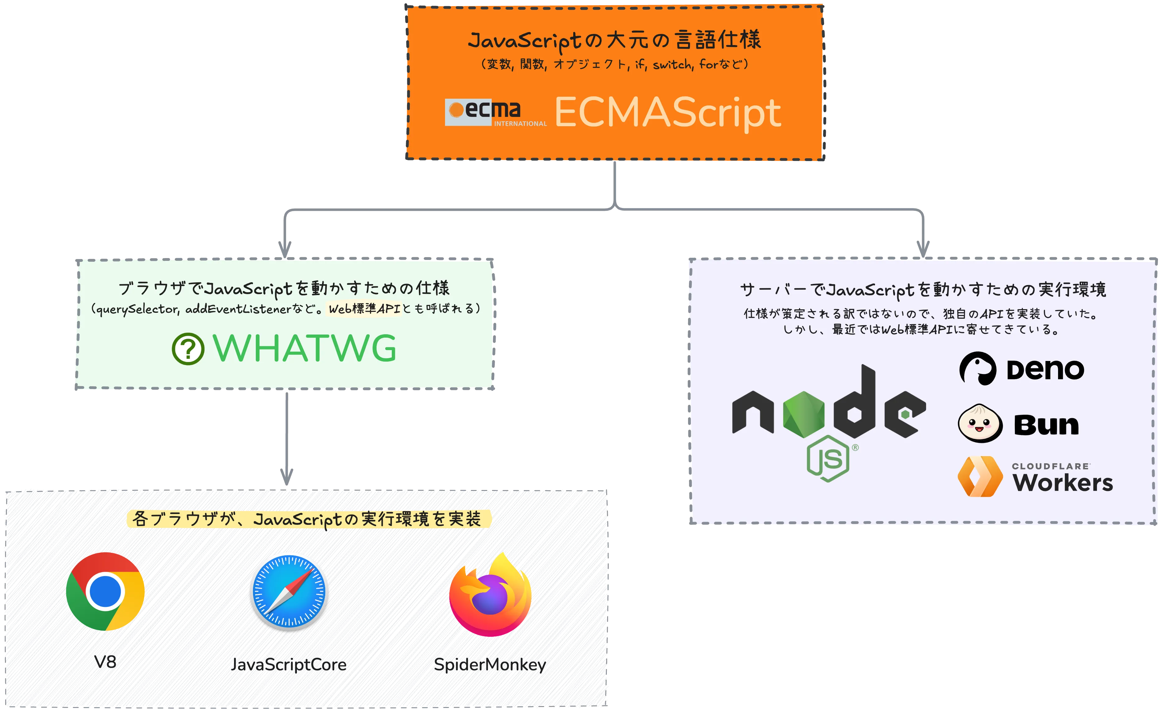 Section titled “ECMAScriptとJavaScriptの関係”